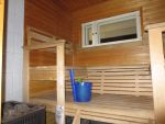 Lake-view sauna with electric heater, a separate shower area, wc, hair dryer.